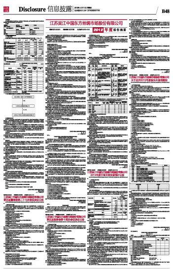 江苏吴江中国东方丝绸市场股份有限公司2012年度报告摘要 2013-04-11 来源:证券时报网 作者: