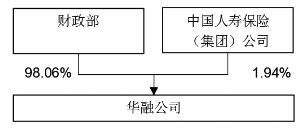 2012年华融公司整体变更为股份公司,股本为2,583,587.05万元。其中,财政部持有股权比例为98.06%,中国人寿保险(集团)公司持有股权比例为1.94%。