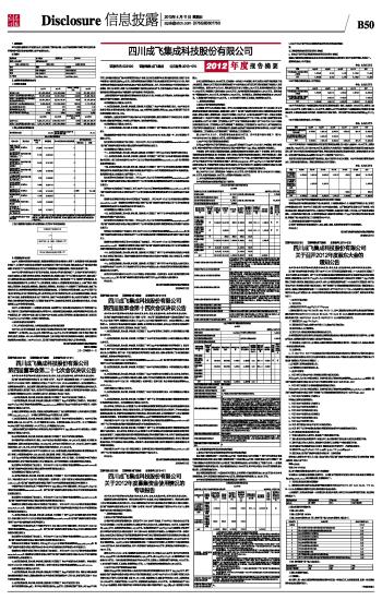 四川成飞集成科技股份有限公司2012年度报告摘要