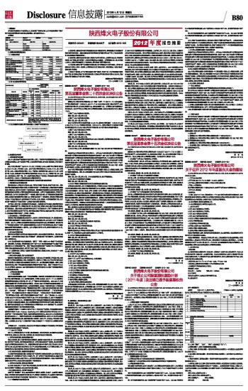 陕西烽火电子股份有限公司2012年度报告摘要 2013-04-12 来源:证券时报网 作者: