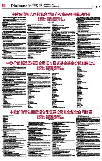 中欧价值智选回报混合型证券投资基金基金份额发售公告