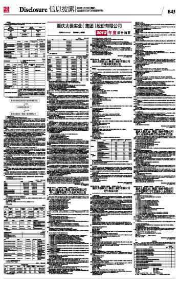 重庆太极实业(集团)股份有限公司2012年度报告摘要 2013-04-13 来源:证券时报网 作者: