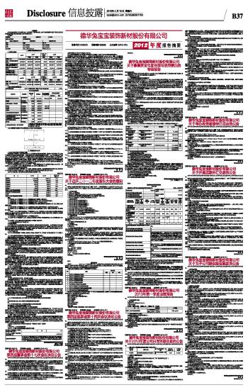 德华兔宝宝装饰新材股份有限公司2012年度报告摘要