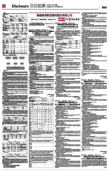 证券代码:002596 证券简称:海南瑞泽 公告编号:2013-007 海南瑞泽新型建材股份有限公司2012年度报告摘要及公告(系列) 2013-04-16 来源:证券时报网 作者: