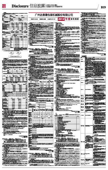 证券代码:002209 证券简称:达意隆 公告编号:2013-007 广州达意隆包装机械股份有限公司2012年度报告摘要及公告(系列) 2013-04-16 来源:证券时报网 作者: