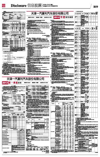 证券代码:000927 证券简称:一汽夏利 公告编号:2013-定001 天津一汽夏利汽车股份有限公司2012年度报告摘要及公告(系列) 2013-04-16 来源:证券时报网 作者: