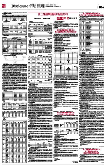 证券代码:600352 证券简称:浙江龙盛 浙江龙盛集团股份有限公司2012年度报告摘要及公告(系列) 2013-04-16 来源:证券时报网 作者: