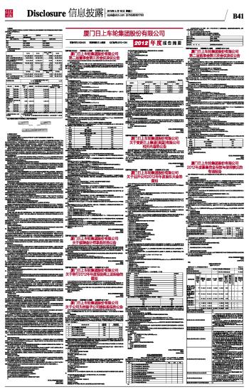 厦门日上车轮集团股份有限公司2012年度报告摘要及公告(系列)