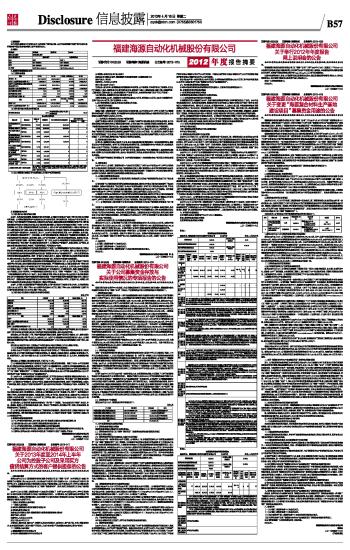 福建海源自动化机械股份有限公司2012年度报告摘要及公告(系列)