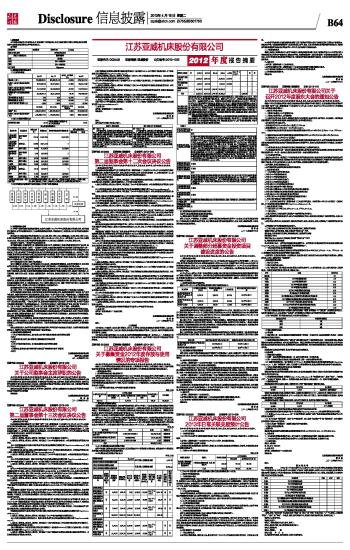 江苏亚威机床股份有限公司2012年度报告摘要及公告(系列)