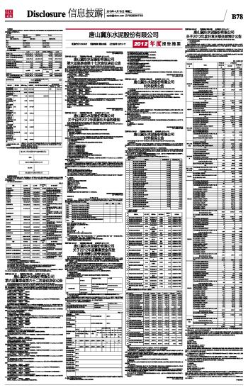 唐山冀东水泥股份有限公司2012年度报告摘要及公告(系列)