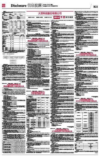 大亚科技股份有限公司2012年度报告摘要及公告(系列)