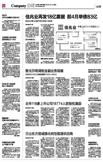 证券时报记者 冯尧 今年佳兆业(01638.HK)似乎对资金极为渴求。继年内两度海外发债共融得10.5亿美元(约合人民币65亿元)后,公司昨日再次做出融资举动,发行于2016年到期的18亿元人民币优先票据。算上此前到手的10.5亿美元,佳兆业不到5个月就已经发债83亿元。 前4月举债83亿 佳兆业方面昨日披露,公司发行2016年到期的18亿元人民币优先票据,年利率为6.875%。佳兆业方面估计,所得款项净额约17.75亿元,该笔资金将全部用作偿还2010年票据,以及作为公司一般营运资金。 今年1月和3月,佳兆业在海外曾进行过两次融资。该公司3月发行了2018年到期的5.5亿美元的优先票据,年利率为8.875%,集资净额估计约5.42亿美元。而1月初,该公司发行了年利率为10.25%的5亿美元优先票据。算上此次发行人民币债券,佳兆业在短短4个月内,发债总额折合人民币高达83亿元。而去年全年,该公司仅发行过一次2.5亿美元优先票据。 “佳兆业短期内大动作利用杠杆,一方面在调整债务结构,一方面也在为下阶段扩张作准备。”一位券商地产分析人士告诉记者,佳兆业今年前两次都在海外发债,目的都是为减少2014年及2015年到期的债务,此次人民币票据将可使佳兆业的债务到期日进一步延后到2016年。 不过,以当前汇率计算,佳兆业未来将会为这83亿元债务支付约7.42亿元利息。这还不包括,海外融资资金进入国内,需要支付国内银行的担保费用。事实上,佳兆业的高杠杆财务运作一直为业内人士所担忧。 佳兆业去年年报数据显示,公司去年借款成本总额高达16.41亿元,较2011年同期增加3.62亿元,增长率高达28.3%。以快速滚动为开发模式的佳兆业,近年来负债程度一路攀升。其权益乘数(资产总额相当于股东权益的倍数)从2010年至2012年,分别为2.64、3.49、3.85。 将参与前海土地拍卖 在宣布举债的同时,佳兆业还透露,公司间接全资附属公司捷丰投资,与大股东旗下富昌海外已就成立合营公司订立框架协议。而成立合营公司的目的就是,参与深圳前海片区的土地拍卖或招标,发展物业项目。 据悉,合营公司的注册资本为5亿元,并将由捷丰投资及富昌海外分别直接或间接拥有51%及49%股权。根据协议,一旦合营公司成为该区土地拍卖或招标的得标者,捷丰投资将协助合营公司建设、开发、经营、维护及管理物业项目,而富昌海外将协助合营公司开展及经营金融业务。 据此前深圳市相关部门透露,前海首批土地出让将在今年上半年启动。“进军前海毫无疑问需要耗费大量资金,佳兆业近阶段连续融资,或许是为下阶段扩张作准备。”前述券商分析人士称。 佳兆业董事会主席郭英成此前曾表示,未来在土地获取上,主要以一二线城市为主,未来的土地储备一二线城市占比会达到70%,三线城市占比30%。 本版导读: