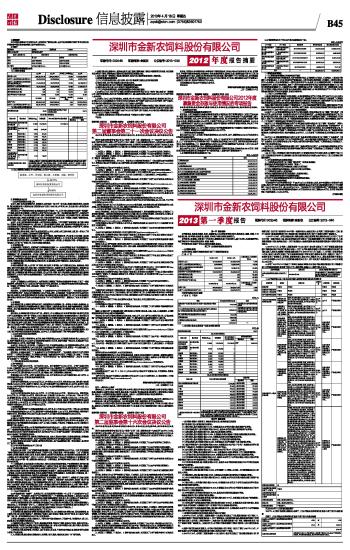 深圳市金新农饲料股份有限公司2012年度报告摘要及公告(系列)