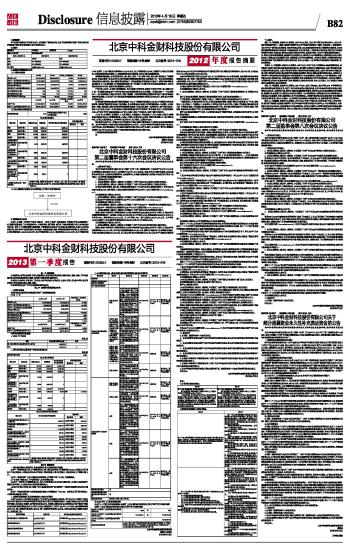 北京中科金财科技股份有限公司2012年度报告摘要及公告(系列)