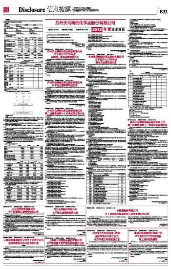 苏州天马精细化学品股份有限公司2012年度报告摘要及公告(系列)