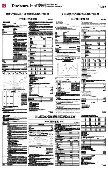 基金管理人:天治基金管理有限公司 基金托管人:中国民生银行股份有限公司 报告送出日期: 二〇一三年四月二十日 §1 重要提示 基金管理人的董事会及董事保证本报告所载资料不存在虚假记载、误导性陈述或重大遗漏,并对其内容的真实性、准确性和完整性承担个别及连带责任。 基金托管人中国民生银行股份有限公司根据本基金合同规定,于2013年4月19日复核了本报告中的财务指标、净值表现和投资组合报告等内容,保证复核内容不存在虚假记载、误导性陈述或者重大遗漏。 基金管理人承诺以诚实信用、勤勉尽责的原则管理和运用基金资产,但不保证基金一定盈利。 基金的过往业绩并不代表其未来表现。投资有风险,投资者在作出投资决策前应仔细阅读本基金的招募说明书。 本报告中财务资料未经审计。 本报告期自2013年1月1日起至3月31日止。 §2 基金产品概况 ■ §3 主要财务指标和基金净值表现 3.1 主要财务指标 单位:人民币元 ■ 注:1、上述基金业绩指标不包括持有人认购或交易基金的各项费用,计入费用后实际收益水平要低于所列数字。 2、本期已实现收益指基金本期利息收入、投资收益、其他收入(不含公允价值变动收益)扣除相关费用后的余额,本期利润为本期已实现收益加上本期公允价值变动收益。 3.2 基金净值表现 3.2.1 本报告期基金份额净值增长率及其与同期业绩比较基准收益率的比较 ■ 3.2.2自基金合同生效以来基金累计份额净值增长率变动及其与同期业绩比较基准收益率变动的比较 天治品质优选混合型证券投资基金 累计份额净值增长率与业绩比较基准收益率的历史走势对比图 (2005年1月12日至2013年3月31日) ■ 注:按照本基金合同规定,本基金在资产配置中股票投资比例范围为基金资产净值的40-95%,债券投资比例范围为基金资产净值的0%-55%。本基金应自2005年1月12日基金合同生效日起六个月内,达到本基金合同第11条规定的投资比例限制。截至本报告期末,本基金符合上述要求。 §4 管理人报告 4.1 基金经理(或基金经理小组)简介 ■ 注:1、表内的任职日期和离任日期为公司作出决定之日。 2、证券从业的含义遵从行业协会《证券业从业人员资格管理办法》的相关规定。 4.2 管理人对报告期内本基金运作遵规守信情况的说明 本报告期内,本基金管理人严格按照《证券投资基金法》和其他相关法律法规的规定以及《天治品质优选混合型证券投资基金基金合同》、《天治品质优选混合型证券投资基金招募说明书》的约定,本着诚实信用、勤勉尽职的原则管理和运用基金财产,为基金份额持有人谋求利益。本基金管理人通过不断完善法人治理结构和内部控制制度,加强内部管理,规范基金运作。本报告期内,基金运作合法合规,没有发生损害基金份额持有人利益的行为。 4.3 公平交易专项说明 4.3.1 公平交易制度的执行情况 报告期内,本基金管理人严格执行《证券投资基金管理公司公平交易制度指导意见》和公司《公平交易制度》、《异常交易监控与报告制度》。本基金管理人公平交易体系涵盖授权、研究分析、投资决策、交易执行、业绩评估等投资管理活动相关的各个环节,并通过明确投资权限划分、建立统一研究报告管理平台、分层次建立适用全公司及各投资组合的投资对象备选库和交易对手备选库、应用投资管理系统公平交易相关程序、定期对不同投资组合收益率差异、交易价差、成交量事后量化分析评估等一系列措施切实落实各项公平交易制度。 报告期内,本基金管理人整体公平交易制度执行情况良好,未发现有违背公平交易的相关情况。 4.3.2 异常交易行为的专项说明 报告期内,本基金管理人管理的所有投资组合未发生交易所公开竞价同日反向交易的情形,未发生所有投资组合参与的交易所公开竞价同日反向交易成交较少的单边交易量超过该证券当日成交量的5%的情形。 报告期内,本基金管理人未发现异常交易行为。 4.4 报告期内基金的投资策略和业绩表现说明 4.4.1 报告期内基金投资策略和运作分析 2013年1季度,国内经济基本平稳,部分投资者期望经济快速回升的预期并没有实现,以工程机械、水泥等为代表投资品行业受到投资者的抛售,而“国五条”的推出,更加剧了投资者对未来经济增速的担心,受此影响,银行、地产、保险、券商等行业也出现较大的回落,而受宏观经济影响较小的TMT、医药行业表现良好。在一季度,本基金认为证券市场存在较好的结构性机会,部分蓝筹股价值低估,本基金在一季度增加了化工、工程等行业的配置,减持了地产、煤炭、银行、商贸、医药等行业的配置。 4.4.2 报告期内基金的业绩表现 报告期末,本基金份额净值为0.8336元,报告期内本基金份额净值增长率为5.89%,业绩比较基准收益率为-0.18%,高于同期业绩比较基准收益率6.07%。 4.5 管理人对宏观经济、证券市场及行业走势的简要展望 展望2013年2季度,本基金认为国内经济面临“常态化”的局面:即经济增速处于7.5%左右的适中水平,政府对经济增长的增速适当降低的容忍度在提高,政府将更多的关注经济的可持续、健康的发展。本基金预计未来国内的货币政策、财政政策将可能处于“中性”状态,期望以政府为主导的“大干快上”的局面将很难出现,加之环保、节能减排要求的提高,许多产能过剩的行业将面临残酷的去产能压力,因此