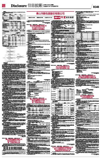 佛山华新包装股份有限公司2012年度报告摘要 2013-04-20 来源:证券时报网 作者: