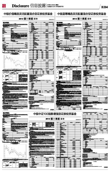 中银中证100指数增强型证券投资基金2013第一季度报告