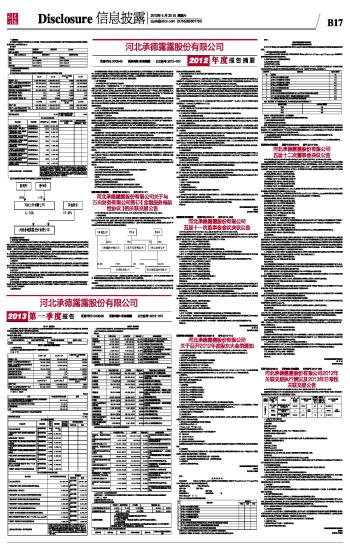 河北承德露露股份有限公司2012年度报告摘要及公告(系列)