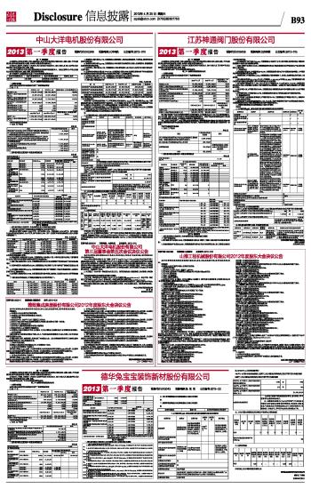 德华兔宝宝装饰新材股份有限公司2013第一季度报告