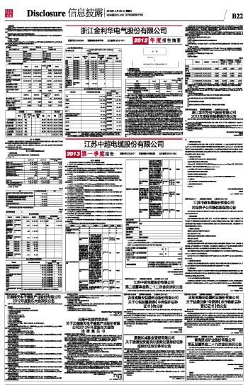浙江金利华电气股份有限公司2012年度报告摘要及公告(系列)