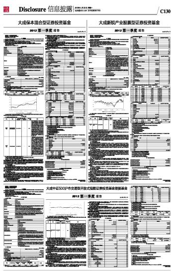大成新锐产业股票型证券投资基金2013第一季度报告 2013-04-22 来源:证券时报网 作者:
