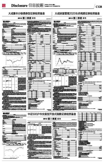 大成财富管理2020生命周期证券投资基金2013第一季度报告 2013-04-22 来源:证券时报网 作者: