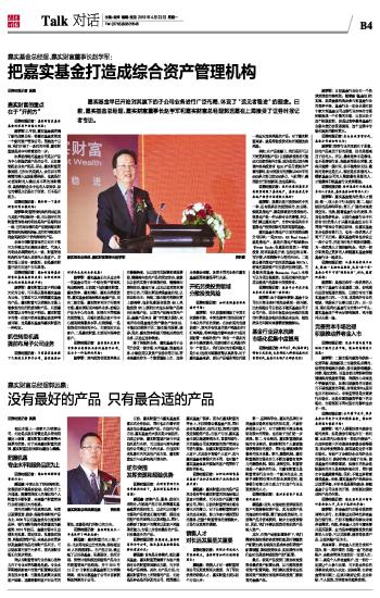 嘉实基金总经理、嘉实财富董事长赵学军: 把嘉实基金打造成综合资产管理机构 2013-04-22 来源:证券时报网 作者:吴昊