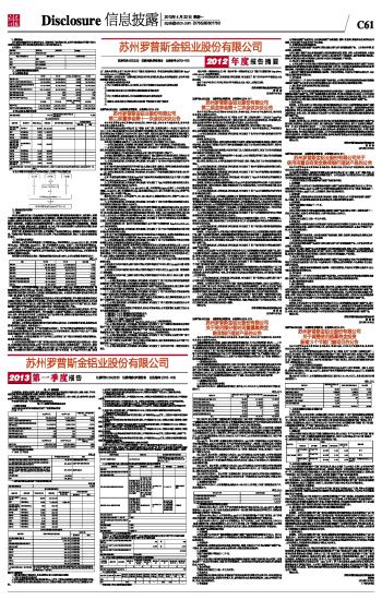 证券代码:002333 证券简称:罗普斯金 公告编号:2013-012 苏州罗普斯金铝业股份有限公司2012年度报告摘要及公告(系列) 2013-04-22 来源:证券时报网 作者: