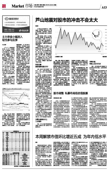 本周解禁市值环比增近五成 为年内低水平 2013-04-22 来源:证券时报网 作者:张刚