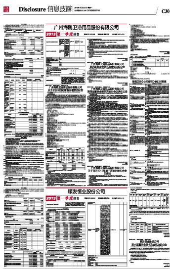 广州海鸥卫浴用品股份有限公司2013第一季度报告