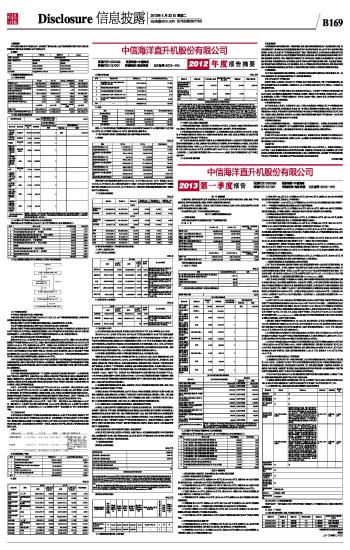 中信海洋直升机股份有限公司2013第一季度报告 2013-04-23 来源:证券时报网 作者: