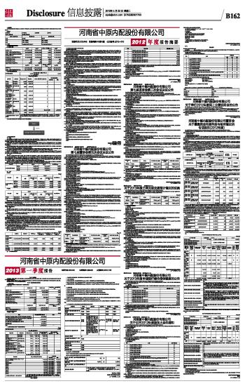 河南省中原内配股份有限公司2012年度报告摘要 2013-04-23 来源:证券时报网 作者: