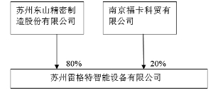 证券代码:002384 证券简称:东山精密 公告编号:2013-016 苏州东山精密制造股份有限公司 对外担保公告 本公司及董事会全体成员保证信息披露的内容真实、准确、完整,没有虚假记载、误导性陈述或重大遗漏。 一、担保情况概述 1、公司全资子公司苏州市永创金属科技有限公司(以下简称“永创科技”)因业务发展的需要决定向银行申请人民币10000万元的贷款,有效期为一年。 公司全资子公司香港东山精密联合光电有限公司(以下简称“香港东山精密”)因业务发展的需要决定向银行申请15000万元的贷款,有效期为一年。 公司全资子公司深圳东山精密制造有限责任公司(以下简称“深圳东山精密”)因业务发展的需要决定向银行申请5000万元的贷款,有效期为一年。 公司控股子公司苏州腾冉电气设备有限公司(以下简称“苏州腾冉”)因业务发展的需要决定向银行申请人民币1500万元的贷款,有效期为一年。 公司控股子公司苏州雷格特智能设备有限公司(以下简称“苏州雷格特”)因业务发展的需要决定向银行申请人民币3000万元的贷款,有效期为一年。 公司控股子公司苏州东魁照明有限公司(以下简称“苏州东魁”)因业务发展的需要决定向银行申请人民币1000万元的贷款,有效期为一年。 2、董事会审议该议案的表决情况: 本公司第二届董事会第二十三次会议分别以9票同意、0 票反对、0 票弃权的表决结果审议通过了《公司2013年度为全资子公司、控股子公司银行融资提供担保的议案》。董事会同意公司为永创科技、香港东山精密、深圳东山精密、苏州腾冉、苏州雷格特、苏州东魁”共计人民币35500万元银行融资提供担保,以上担保期限均为1年,占公司2012年12月31日(经审计)净资产的26.89%。 上述担保事项须提交股东大会审议。 二、被担保人基本情况 1、苏州市永创金属科技有限公司成立于2003年8月15日,系本公司全资子公司,注册资本为人民币16000万元。注册地点:苏州市吴中区胥口镇浦庄大道,法定代表人:袁永峰,主要经营范围为:生产、销售:金属冲压件、金属零部件、微波通信系统设备;钣金加工;自营和代理各类商品和技术的进出口业务。 永创科技股权结构如下: ■ 香港东山精密联合光电有限公司成立于2010年9月27日,系本公司全资子公司,注册资本为1000万港元。注册地点:香港仔湾皇后大道东213号胡忠大厦22楼2209室 。法定代表人:冒小燕,主要经营范围为:销售通讯设备、CPV太阳能设备、LED背光源等,建立营销网络,进行海外投资。 香港东山精密股权结构如下: ■ 深圳东山精密制造有限责任限公司成立于2010年11月23日,系本公司全资子公司,注册资本为人民币6000万元。注册地点:深圳市光明新区公明办事处上村社区莲塘工业城铁塔旭发科技园A1栋一楼103.二楼203.205.三楼302B单元。法定代表人:袁永刚,主要经营范围为:TV背板、五金件、微波通讯配件、精密钣金件、模组、LED灯、灯条、其它光学产品的生产;国内贸易,货物及技术进出口。 深圳东山精密股权结构如下: ■ 苏州腾冉电气设备有限公司系由梁艳、赵浩、陈学平和魏军于2010年6月24日共同出资成立的,成立时注册资本为人民币600万元。2010年8月23日,本公司以货币资金400万元对苏州腾冉增资。苏州腾冉注册地点:苏州市吴中区临湖镇浦庄和安路,法定代表人:赵浩,注册资金:1000万元;主要经营范围为:设计、生产、销售:变压器、电抗器,并提供售后服务。本公司占其40%的股权,为其第一大股东。该公司董事会由5名董事组成,其中由本公司委派的董事3名。 苏州腾冉股权结构如下: ■ 苏州雷格特智能设备有限公司系是由南京福卡科贸有限公司于2010年2月26日出资组建的有限责任公司,成立时注册资本为人民币200万元。2010年5月,本公司以货币资金800万元对苏州雷格特独家增资。苏州雷格特注册地点:苏州市吴中区东山工业园凤凰山路8号,法定代表人:王建强,注册资金:1000万元;主要经营范围为:组装、销售:自动检票机,自动化控制设备、自动收费设备、自动化设备。本公司占其80%的股权,为其第一大股东。 苏州雷格特股权结构如下: ■ 苏州东魁照明有限公司系由本公司与自然人邰伟科、袁指行于2011年3月23日共同发起设立。苏州东魁注册地点:苏州高新区嵩山路133号,法定代表人:袁永刚;主要经营范围为:生产、组装:LED灯;生产、销售:电光源产品及配套器件;自营和代理各类商品及技术的进出口业务。注册资本为人民币2000万元,其中本公司以货币资金出资1200万元,占其注册资金的60%,为其第一大股东。 苏州东魁股权结构如下: ■ 2、永创科技、香港东山精密、深圳东山精密、苏州腾冉、苏州雷格特、苏州东魁最近2012年度主要财务数据如下: 单位:元 ■ 三、担保协议的内容 1、永创科技,担保方式:信用担保;担保期限:自该笔担保生效之日起一年;担保金额:人民币10000万元整。 2、香港东山精密,担保方式:信用担保;担保期限:自该笔担保生效之日起一年;担保金额:人民币15000万元整。 3、深圳东山精密,担保方式:信用担保;担保期限:自该笔担保生效之日起一年;担保金额:人民币5000万元整。 4、苏州腾冉,担保方式:信用担保;担保期限:自该笔担保生效之日起一年;担保金额:人民币1500万元整。 5、苏州雷格特,担保方式:信用担保;担保期限:自该笔担保生效之日起一年;担保金额:人民币3000万元整。 6、苏州东魁,担保方式:信用担