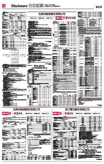 瓦房店轴承股份有限公司2013第一季度报告 2013-04-23 来源:证券时报网 作者:
