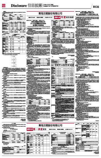 青岛汉缆股份有限公司2013第一季度报告 2013-04-23 来源:证券时报网 作者: