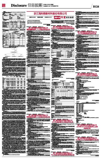 浙江海利得新材料股份有限公司2012年度报告摘要 2013-04-23 来源:证券时报网 作者: