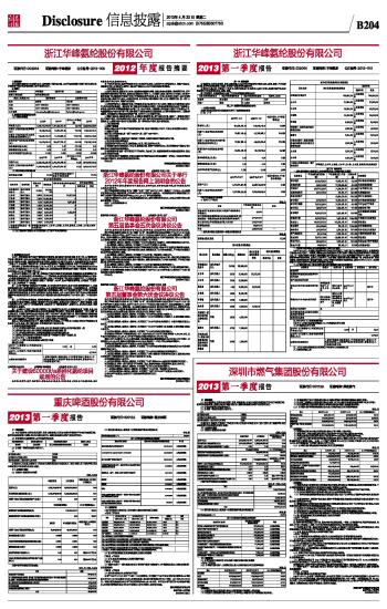 浙江华峰氨纶股份有限公司2013第一季度报告 2013-04-23 来源:证券时报网 作者: