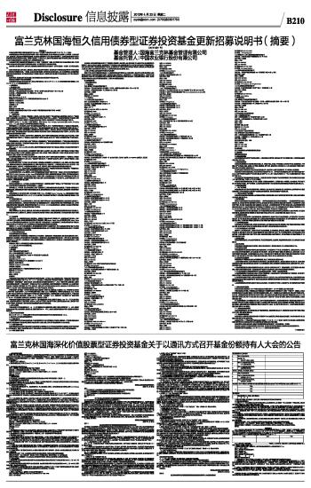 富兰克林国海恒久信用债券型证券投资基金更新招募说明书(摘要)(2013年第1号) 2013-04-23 来源:证券时报网 作者: