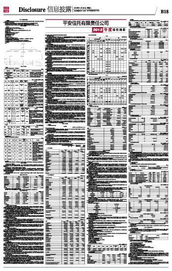 平安信托有限责任公司2012年度报告摘要 2013-04-23 来源:证券时报网 作者: