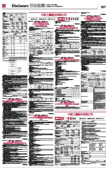 注:以上净利润均指归属于上市公司股东的净利润。 中航三鑫股份有限公司董事会 二〇一三年四月二十三日