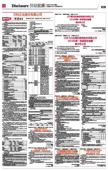 本公司及董事会全体成员保证信息披露内容的真实、准确和完整,没有虚假记载、误导性陈述或重大遗漏。 辽宁聚龙金融设备股份有限公司2013年第一季度报告已于2013年4月23日在中国证监会指定信息披露网站巨潮资讯网(http://www.cninfo.com.cn)上披露,敬请投资者注意查阅。 特此公告! 辽宁聚龙金融设备股份有限公司 董事会 二〇一三年四月二十三日 本版导读: