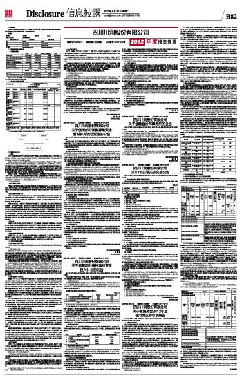 证券代码:002272 证券简称:川润股份 公告编号:2013-020号 四川川润股份有限公司2012年度报告摘要及公告(系列) 2013-04-23 来源:证券时报网 作者: