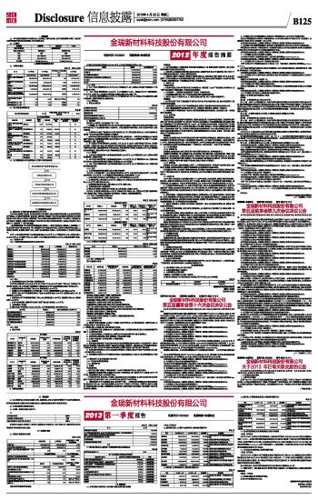 金瑞新材料科技股份有限公司2012年度报告摘要