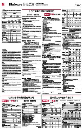 牡丹江恒丰纸业股份有限公司2013第一季度报告