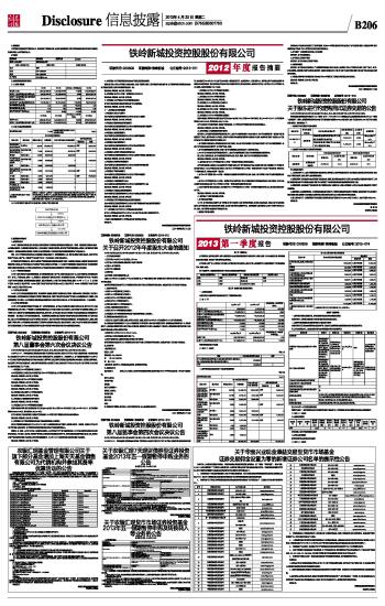 铁岭新城投资控股股份有限公司2012年度报告摘要