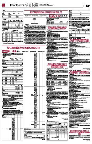 浙江棒杰数码针织品股份有限公司2012年度报告摘要及公告(系列)