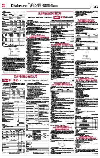 兄弟科技股份有限公司2012年度报告摘要及公告(系列)