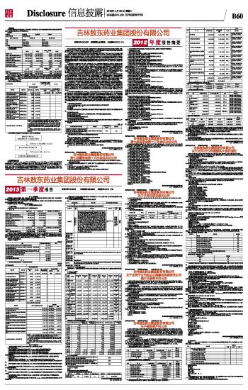 吉林敖东药业集团股份有限公司2012年度报告摘要及公告(系列)